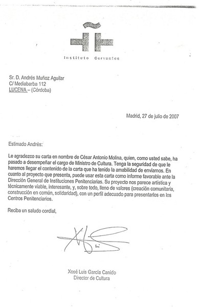 Cartas entre Andrés y el Instituto Cervantes
